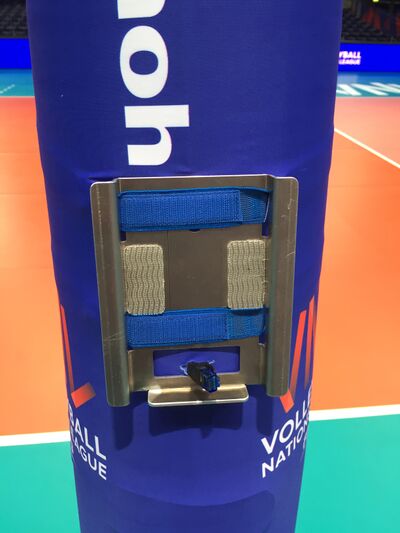 - Die Anbringung erfolgt entweder am Netzpfosten auf der Seite des 1. Schiedsrichters oder direkt am Schiedsrichterstuhl.