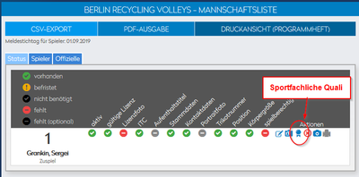 Die Schreiben zur sportfachlichen Qualifikation können von den Vereinen selbst in SAMS aufgerufen und gedruckt werden. Hierzu muss lediglich der betreffende Spieler auf der Mannschaftsmeldeliste (MML) stehen. Der Aufrufpunkt ist nur bei denjenigen Spielern hinterlegt, bei denen die sportfachliche Qualifikation benötigt wird. | |||