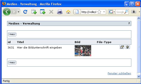 DVL-Redaktionssystem: Medienliste